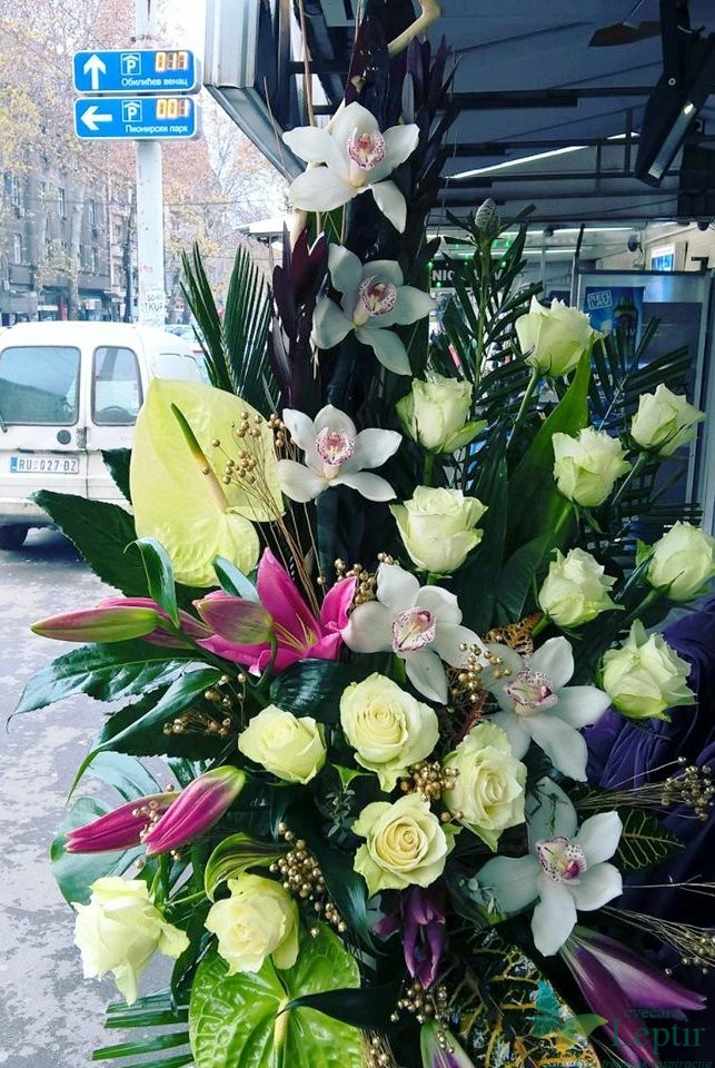 Orhideje, anthuriumi, ruze, orijentalni ljiljani, leukadendron, zelenilo egzotik mix